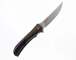 TwoSun Folding Knife Titanium/ Black Linen Micarta Handle D2 Clip Point Plain Edge TS348