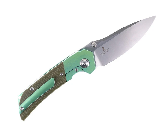 TwoSun Tepe Designs Button Lock Folding Knife Color Titanium Handle D2 Plain Edge TS210-Color