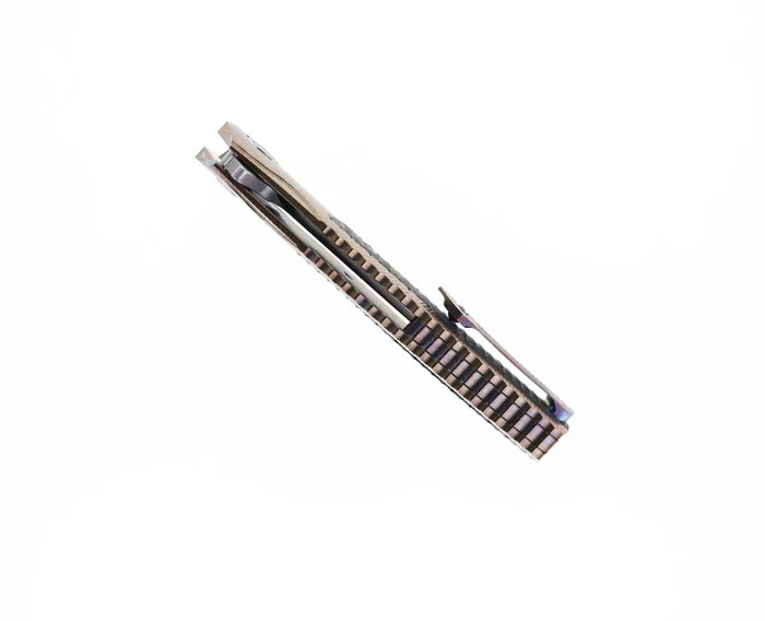 TwoSun Front Flipper Pocket Knife Purple Titanium & Carbon Fiber Handle M390 Blade TS389-PUR