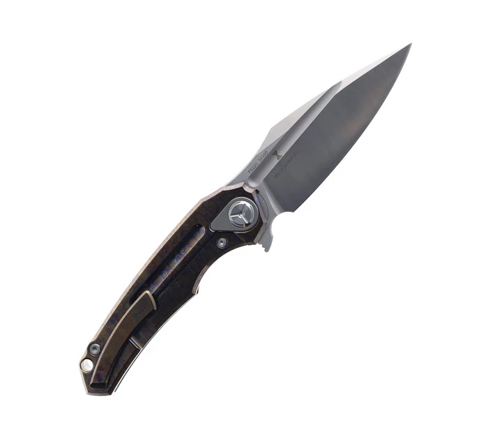 TwoSun Tepe Designs Button Lock Folding Knife Color Titanium Handle D2 Plain Edge TS210-Color