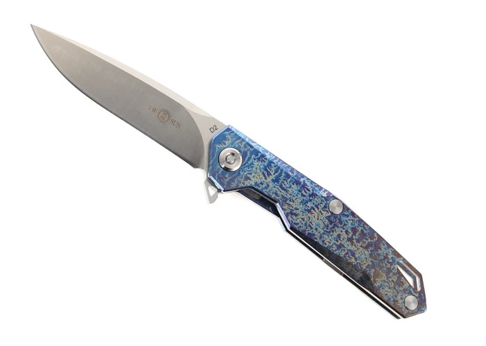 TwoSun Folding Knife 14C28N Titanium Handle Plain Edge TS279