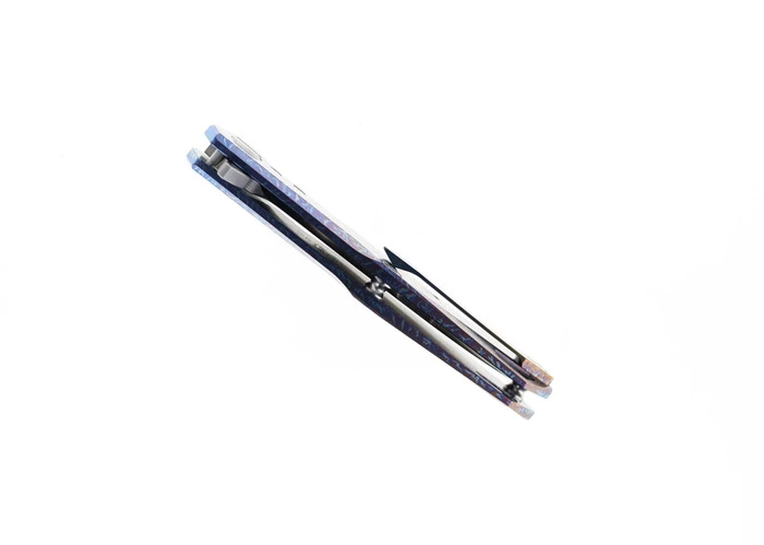 TwoSun Front Flipper Pocket Knife Purple Titanium & Carbon Fiber Handle M390 Blade TS389-PUR