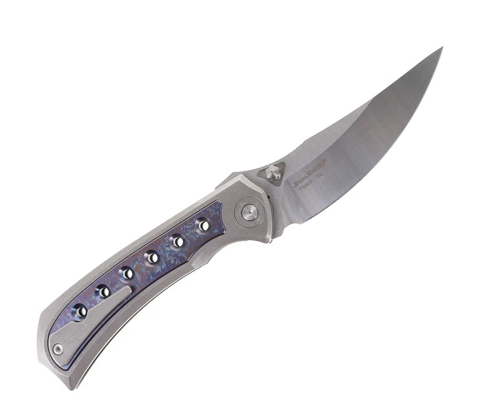 TwoSun Folding Knife Titanium Handle W/ Carbon Fiber Inlay M390 Plain Edge TS186-M390